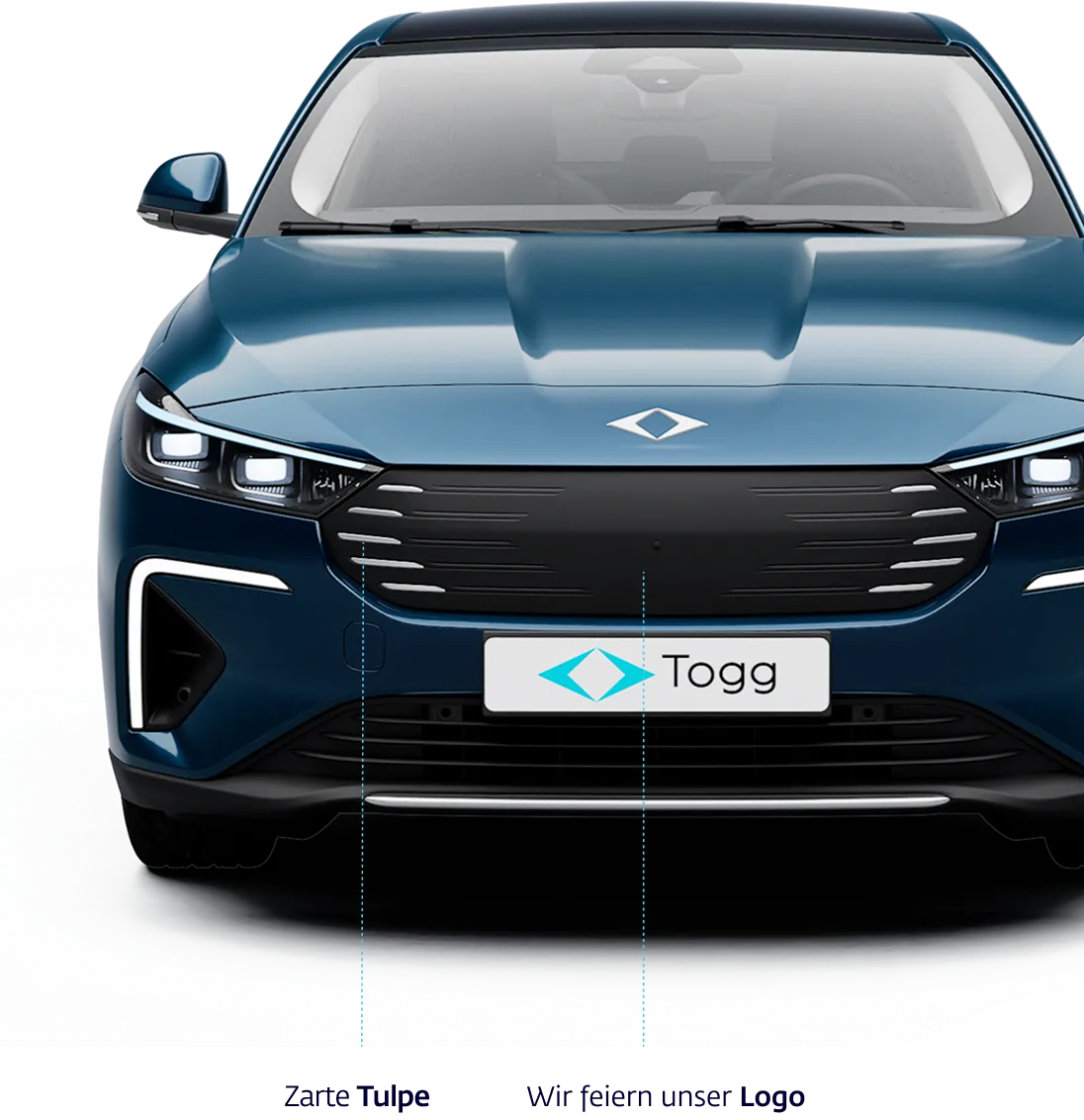 Die Frontpartie ist im Vergleich zum T10X tiefer positioniert, was die aerodynamische Effizienz verbessert und gleichzeitig zu einem sportlichen und athletischen Erscheinungsbild beiträgt. Der Designfokus liegt auf einer horizontalen Ausrichtung, die sich in gestreckten Linien und kompakt gestalteten Elementen wie Scheinwerfern und Kühlergrill zeigt – und so ein breites, flaches Profil erzeugt.The front face has been positioned lower in comparison to the T10X, enhancing aerodynamic efficiency while contributing to a sporty and athletic appearance. The design focuses on horizontal stretching, resulting in stretched lines and compact volumes such as the headlights and shield, creating a wide and low profile.